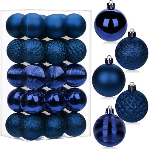 30 st julgranskulor julkulor prydnader med strängar, 50 mm/2,0 tum mörkblå okrossbar plast hängande dekorationer, julgranshängen för hemmafest bröllop semester