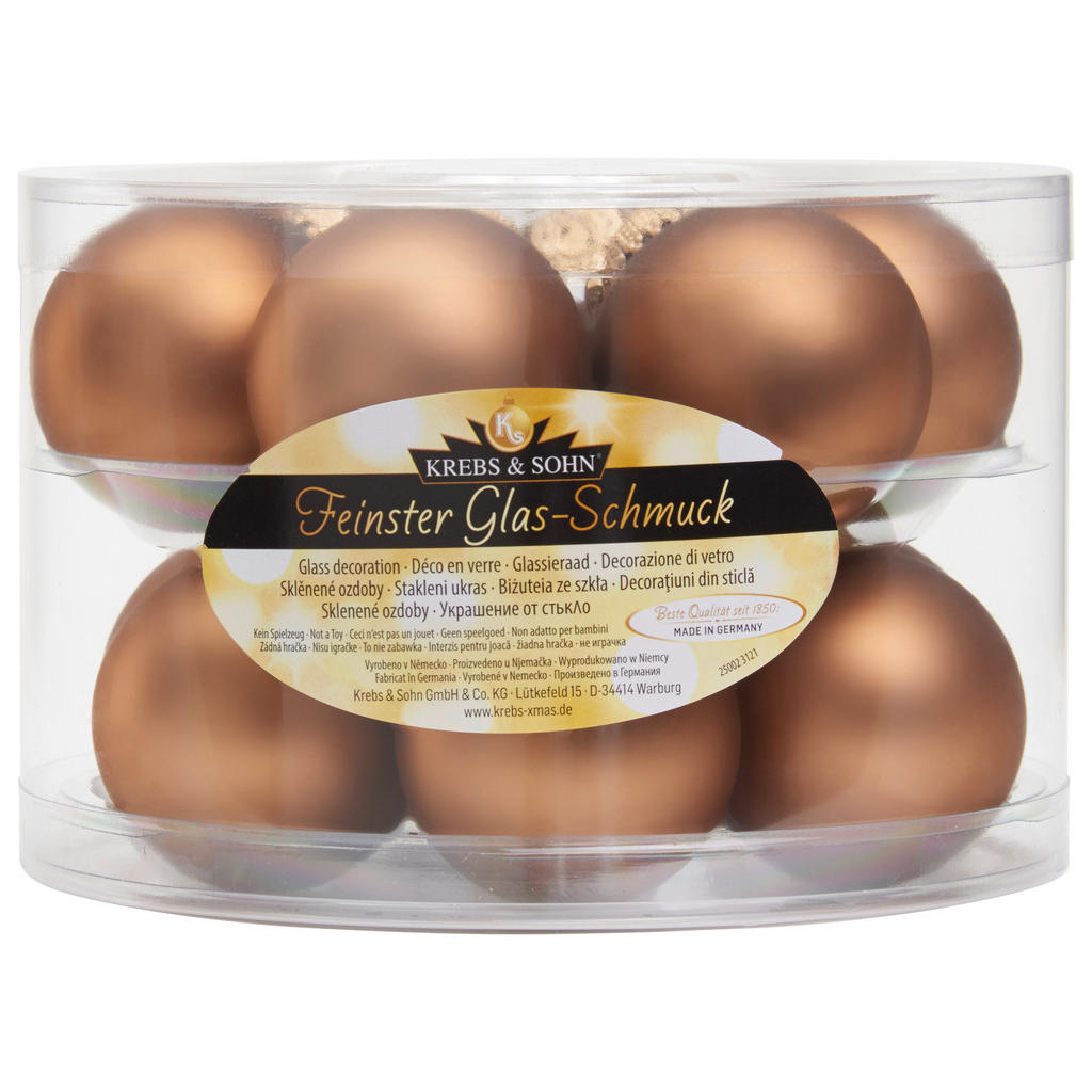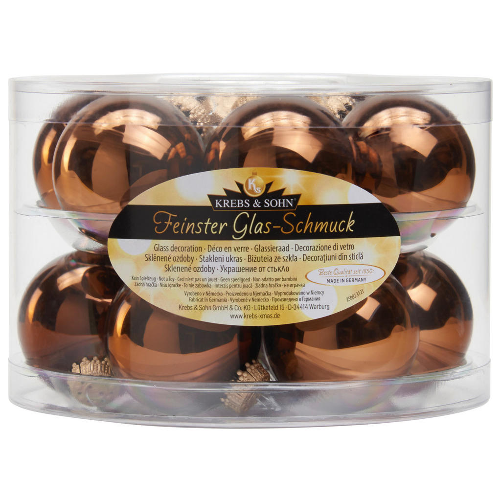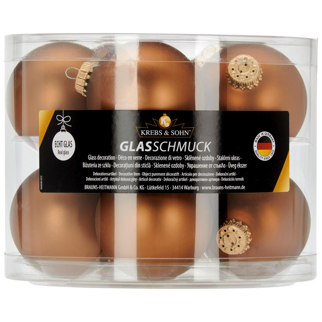 Krebs & Sohn Uppsättning av 12 glaskulor – julgransprydnader att hänga upp – julgranskulor sortiment – brun, silver