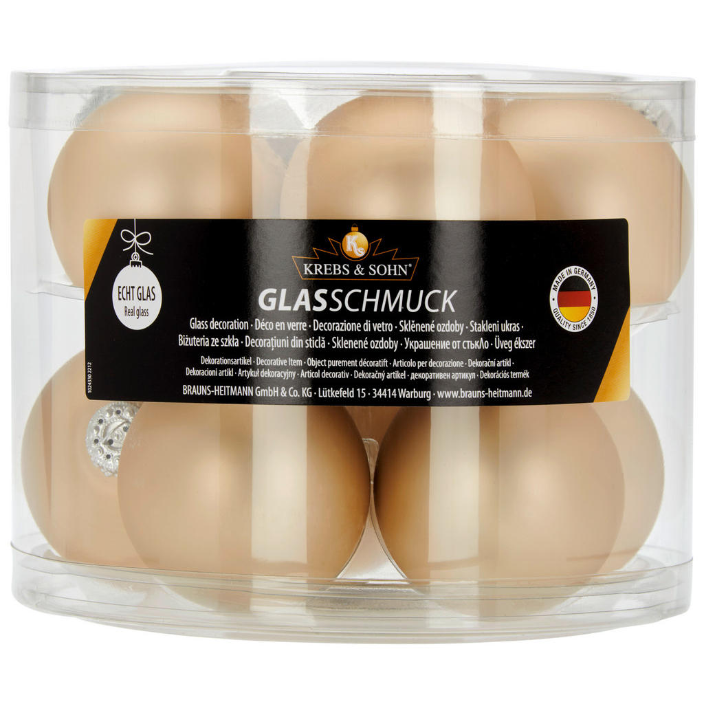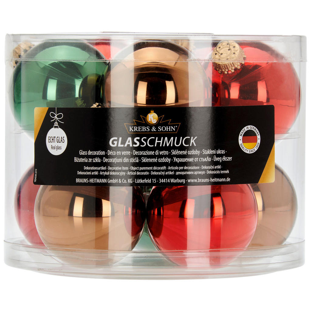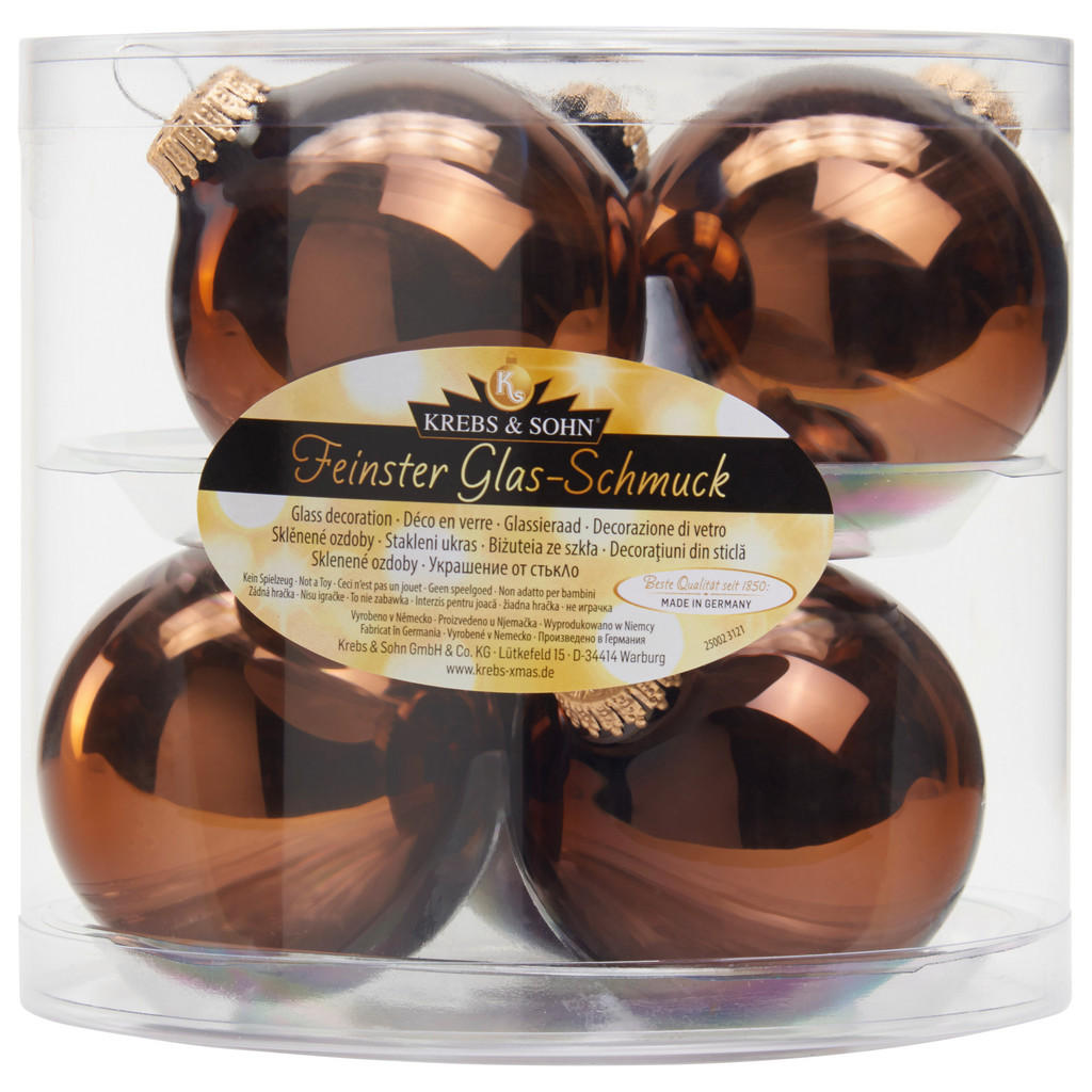 Krebs & Sohn Uppsättning av 12 glaskulor – julgransprydnader att hänga upp – julgranskulor sortiment – brun, silver