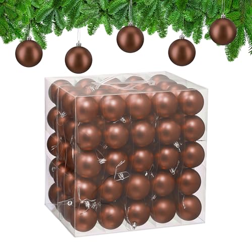 Relaxdays Julgranskulor, set om 100, juldekoration, matt design, julgranskula, julgransprydnad i Ø 6 cm, brun