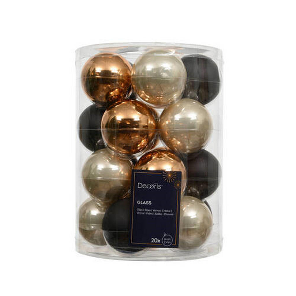 Krebs & Sohn Uppsättning av 20 julgranskulor, julgransdekoration för upphängning av julgranskulor 5,7 cm, brun/silver/guld, (5,7 cm Ø diameter)