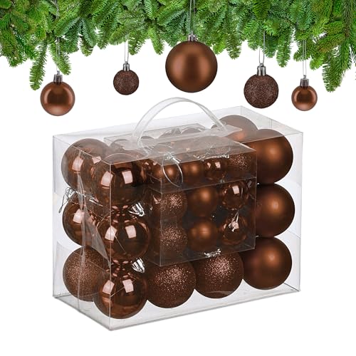Relaxdays julgranskulor, set med 50, trädornament, högtidsdekorationer, plast, glittrig, matt och glansig, brun, 3 storlekar
