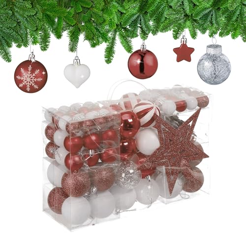 Relaxdays julpynt, set med 101, glittrande, träddekorationer, julgranskulor och stjärnor, plast, traditionell, brun, 19 x 20 x 2,5 cm
