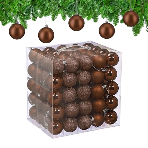 Relaxdays Julgranskulor, set om 100, juldekoration, matt, glänsande, glittrande, julgranskula Ø 3, 4 och 6 cm, brun