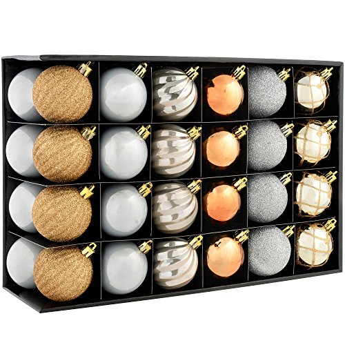 WeRChristmas Okrossbara lyxiga julgranskulor, plast, brons/silver/guld, 48 stycken
