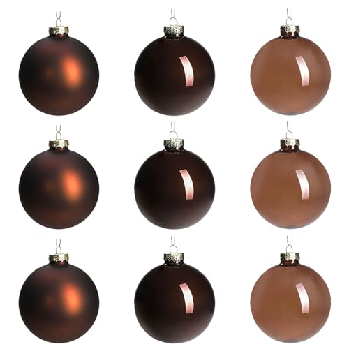 DN DECONATION Brunt glas julgranskulor, 8 cm hängande julgranskulor för julgransdekoration, set med 9 dekor för semester, halloween, bröllopsfest gåva