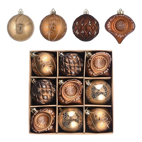 Valery Madelyn julgranskulor för alla hjärtans dag, 9 karat brons koppar brun och guld okrossbar julgransdekorationsset, 7 cm lyxiga hängande prydnader för julhelgen dekor