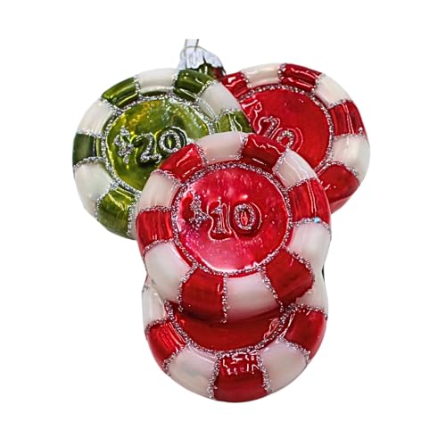 Dekorhjälte24 Lauschaer julgransprydnad – julgranskula bullerus, julgranskulor, glasornament i kasinostil, glas – jetonger i rött och grönt med silverkrona, L/B/H 8 x 3 x 10 cm.