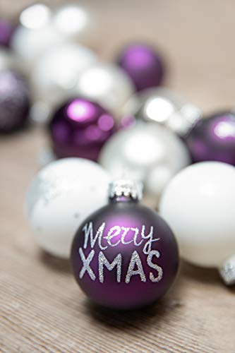 KREBS & SOHN Uppsättning av 12 julgranskulor av glas – julgranspynt, julgranskulor, juldekoration – vit, lila, silver, (8,0 cm), 1007222