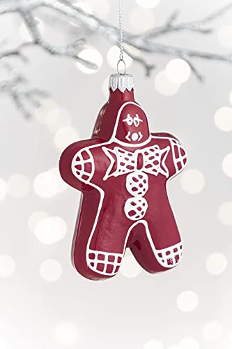 Glas julgranskulor - formen av pepparkakamannen i rött med vit dekoration