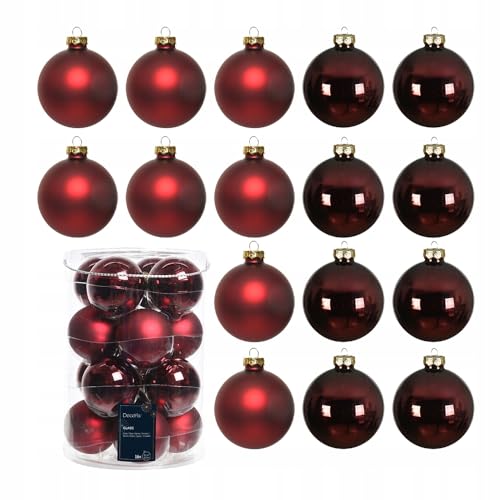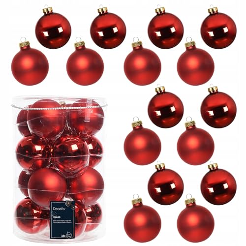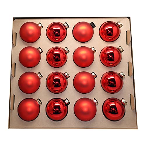 16-delars set med julgranskulor i glas, röd, glänsande och matt, 8 cm diameter, högkvalitativ dekoration