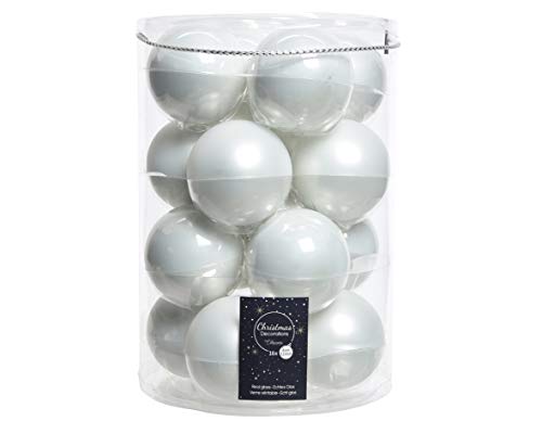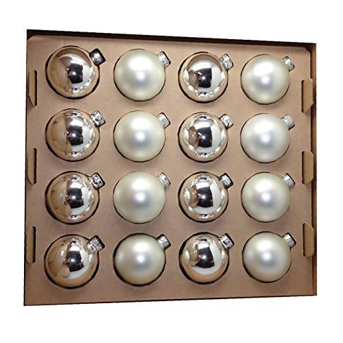 Uppsättning av 16 julgranskulor, vita glas, 8 cm – matt och glänsande, festlig juldekoration