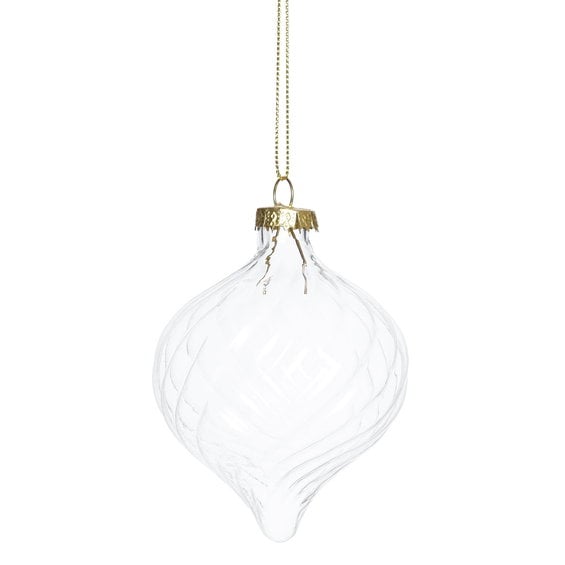 Julgranskulor, runda julkulor av glas med swirl- / virvelform, 4 st. Ø8 cm, längd 10 cm