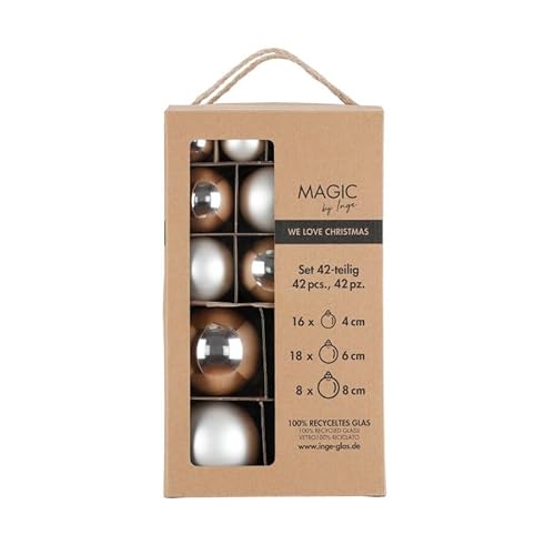 MAGIC by Inge – julgranskulor set 42 delar frostigt silver, med diameterna 4 cm, 6 cm och 8 cm, julgransprydnad glas