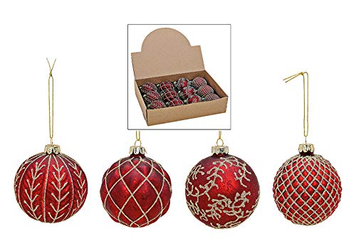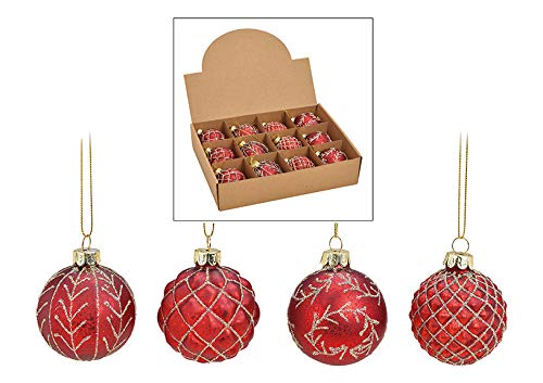 Set med 12 vackra handgjorda julkulor i glas, diameter 8 cm (0,26 fot), julgranskulor, juldekoration (röd, guld)