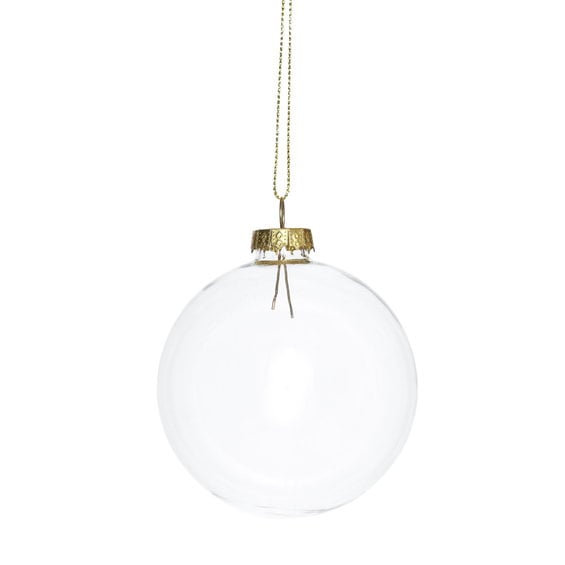 12 x genomskinliga runda julgranskulor i glas sfärer ornament dekoration 6 cm