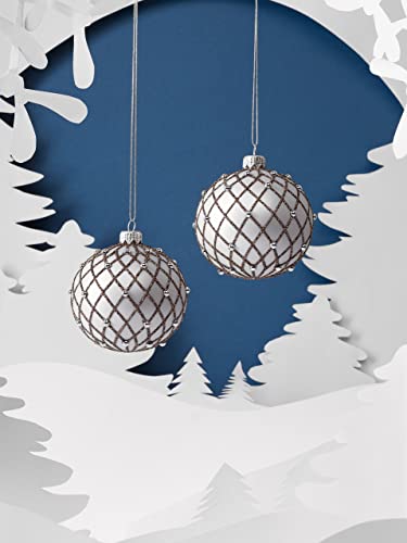 2 Glas Xmas julgranskulor med glitter mönster och pärlor