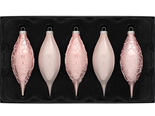 WeRChristmas glas julgran tårformade julgranskulor, babyrosa, 15 cm