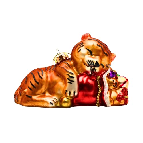Dekohjälden24 Lauschaer Julgransprydnad – julgranskulor bullerus, glaskulor, julgranskulor, glasornament som tiger, glas, babytiger med gåvor, av lauscha, L/B/H 11 x 6 x 8 cm.
