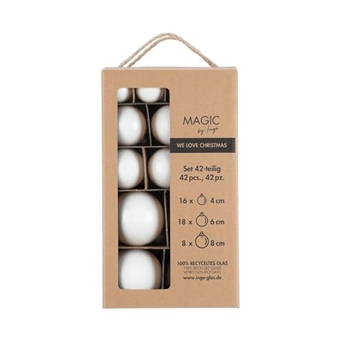 MAGIC by Inge – set med julgranskulor i 42 delar, ren vit, med diametrar 4 cm, 6 cm och 8 cm, julgransprydnad i glas