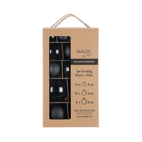 MAGIC by Inge – set med julgranskulor i 42 delar, Ebony svart, med diametrar 4 cm, 6 cm och 8 cm, julgransprydnad i glas