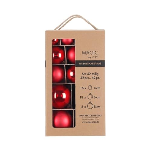 MAGIC av Inge – set med julgranskulor i 42 delar, god röd, med diameterna 4 cm, 6 cm och 8 cm, julgransprydnad i glas