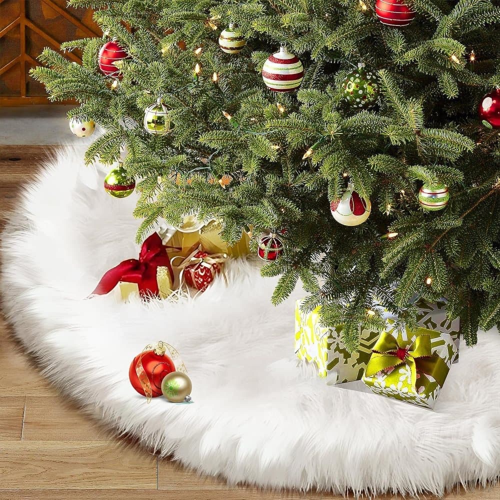 Lollanda Mjuk Julgranskjol 70/90/120 cm - julgransmatta Vit Päls, lämplig för juldekoration, fest och högtidsinredning