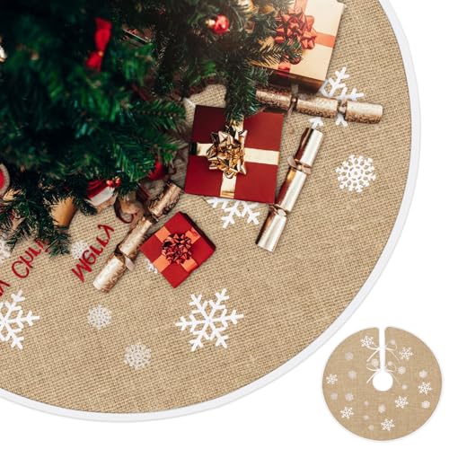 Julgranskjol, 120 cm julgransmatta, julgransmatta, julgranskjol, linnekjol för julgranskjol, vit snöflingemodell, för julfest
