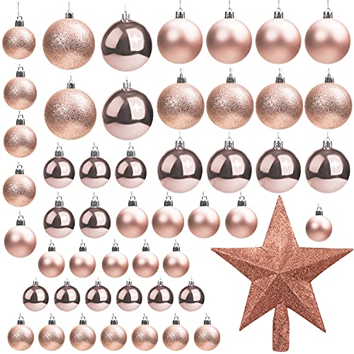 Belle Vous 50-pack julgranskulor, blandade storlekar, glittrande roséguldfärgade julgranskulor med julgransstjärna, hängande ornament för juldekorationer och högtidsfester, inomhus-och utomhusdekorationer