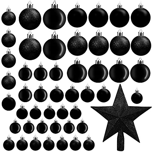 Belle Vous 50-pack julgranskulor, blandade storlekar, glittrande svarta julgranskulor med julgransstjärna, hängande ornament för juldekorationer och högtidsfester, inomhus-och utomhusdekorationer