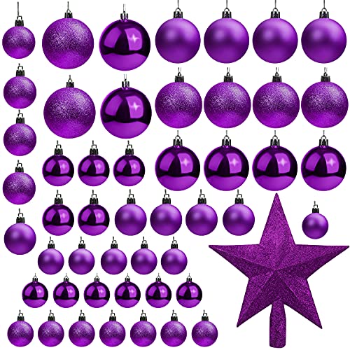 Belle Vous 50-pack julgranskulor, blandade storlekar, glittrande lila julgranskulor med julgransstjärna, hängande ornament för juldekorationer och högtidsfester, inomhus-och utomhusdekorationer