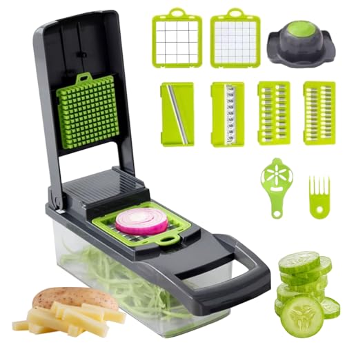 Luazvilkpsar Grönsaksskivare Mandolin Grönsakshyvel, lökskivare, 14 i 1 multifunktion kubskärare, potatisskärare, fruktskivare, kökshyvel, Vegetable Chopper Dicer, Julienne