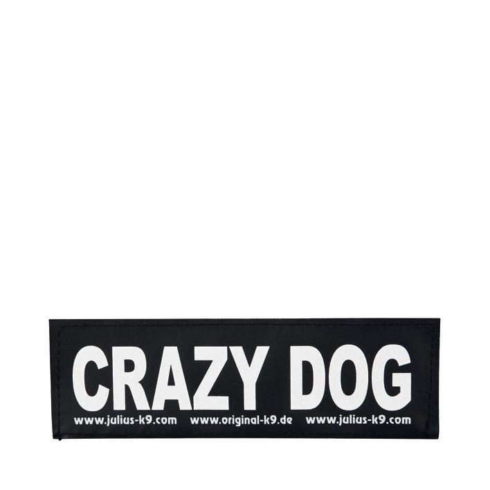 Julius-K9 Reflekterande Kardborremärke Crazy Dog i Svart, Storlek L 16x5 cm, 2-pack
