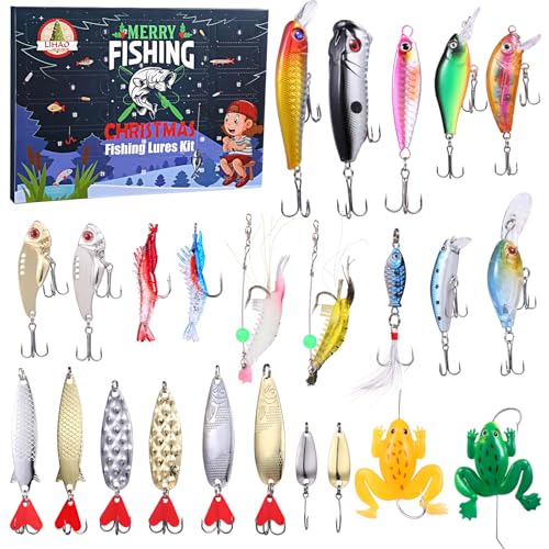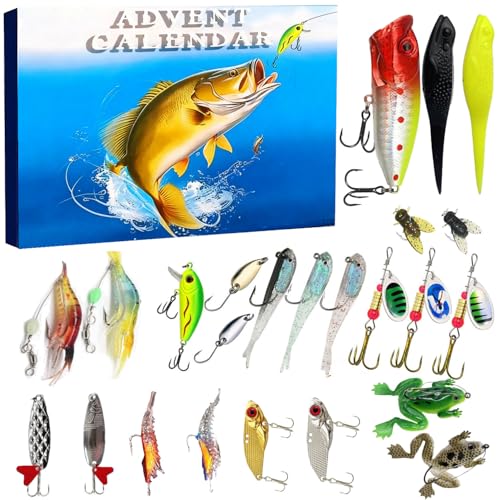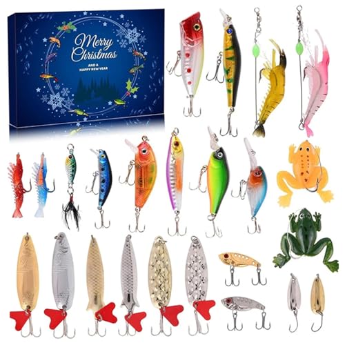 Adventskalender fiskespöke män, 24 dagars fiskeredskap julkalender fiske bete set, fiskbeten julkalender för 24 dagars nedräkning fiskeägare (fiske3)