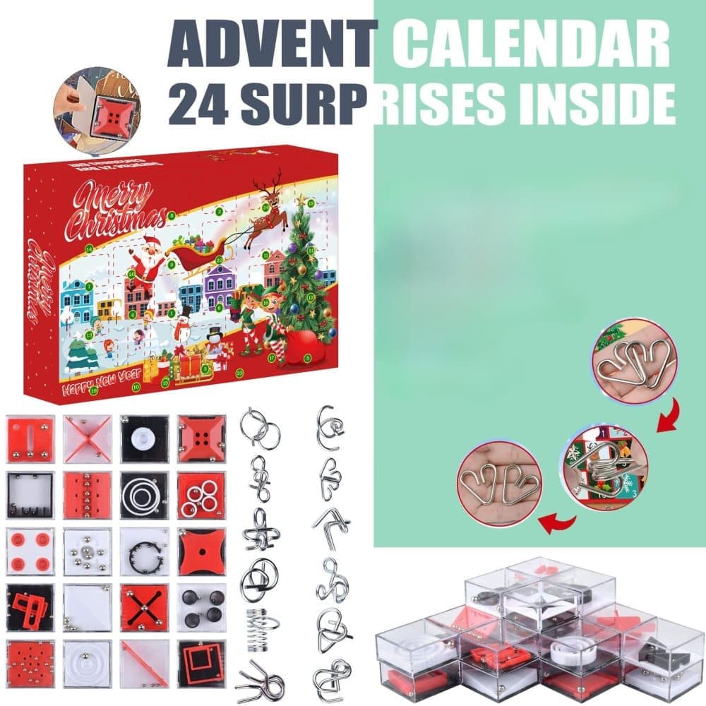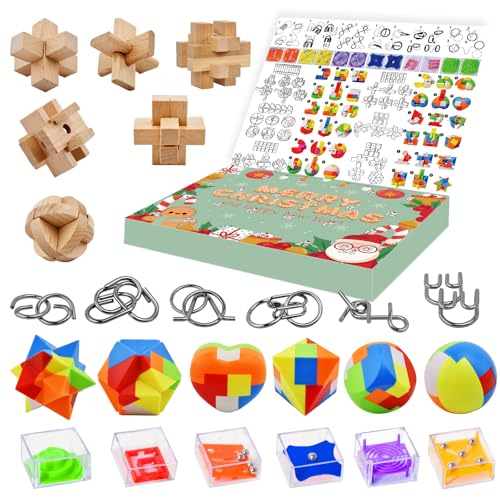 Adventskalender 2025 - Pusselspel för Barn och Vuxna Familj | 3D Metallpussel & Träpussel IQ Test Skicklighetsspel | Rolig Julkalender med 24 Lärorika Utmaningar | Julklapp till Pojkar och Flickor