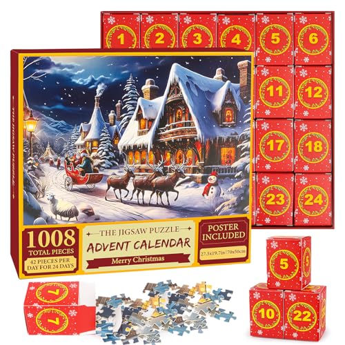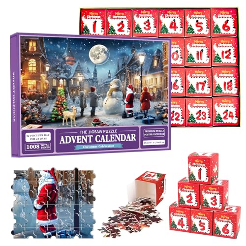 Adventskalender 2024 För Barn, Adventskalender Pussel, Julkalender Jul Bifall Jigsaw Pussel,Barn Pussel 1008 Delar Vuxna Julkalender Present Jigsaw överraskningar Flickor Pojkar