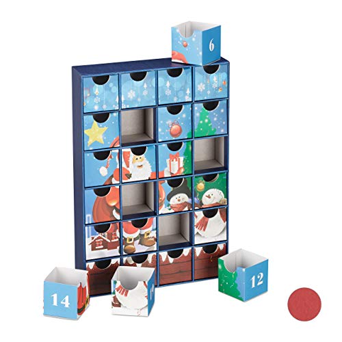 Relaxdays fyllbar advent, 24 lådor, återanvändbar, för barn och vuxna, julkalender, blå, 33 x 22 x 5,5 cm
