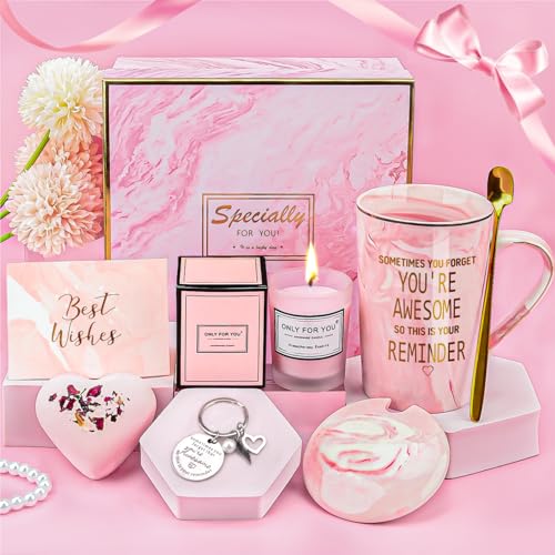 GEEKEO Presentidéer för kvinnor, present till dam födelsedag, 9 st resemugg doftljus SPA presentförpackning, julklapp till dam, alla hjärtans dag present till henne, bästa vän presentset