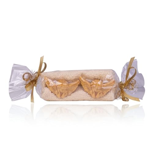 Accentra Present ANGEL i karamellförpackning, 2x guldtvål i änglaform, krämfärgad vante, doft: Vanilj, julklapp kvinnor