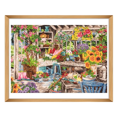 Trimits stora korsstygnskit - Räknat broderi handarbete för vuxna nybörjare barn, julklappar väggkonst, (ram ingår inte) 14 stycken, trädgårdsmästare paradis