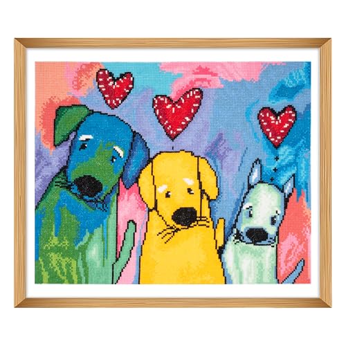 Trimits stora korsstygnskit - Räknat broderi handarbete för vuxna nybörjare barn, julklappar väggkonst, (ram ingår inte) 14 Count, hund