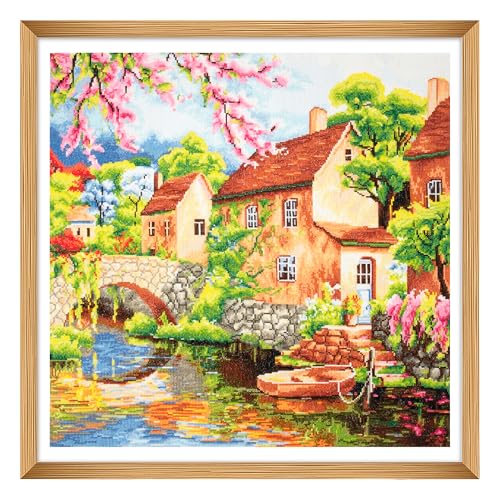 Trimits stora korsstygnskit - Räknat broderi handarbete för vuxna nybörjare barn, julklappar väggkonst (ram ingår ej), 11 Count, landstupp
