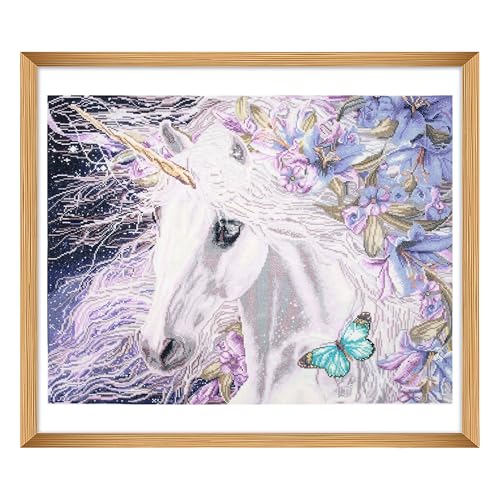 Trimits stora korsstygnskit - Räknat broderi handarbete för vuxna nybörjare barn, julklappar väggkonst, (ram ingår inte) 14 Count, enhörning