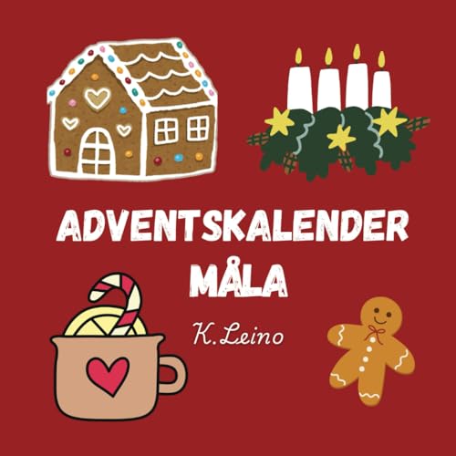Adventskalender Måla: Målarbok för barn och vuxna. 24 olika Jul motiv – Måla Pepparkaksgubbar, Tomtar, Julgranar, Snögubbar & Julklappar. Nedräkning till Julafton. Målarbok från 3 år