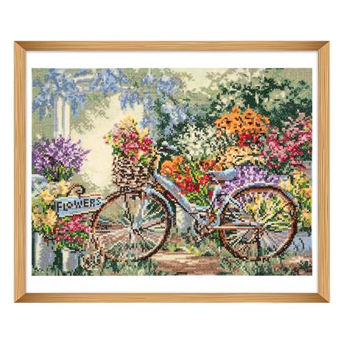 Trimits stora korsstygnskit - Räknat broderi handarbete för vuxna nybörjare barn, julklappar väggkonst (ram ingår ej), 11 Count, cykel