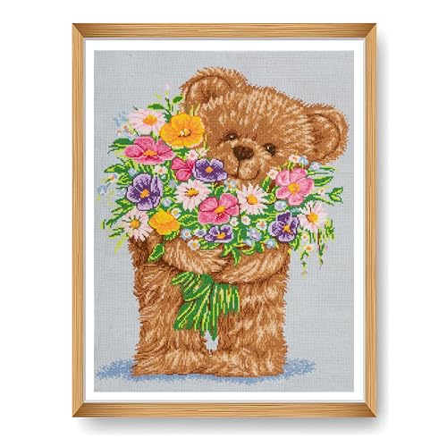 Trimits Stora korsstygnskit - Räknat broderi handarbete för vuxna nybörjare, barn, julklappar väggkonst för hem, 11 st Aida 44 x 57 cm, teddy (ram ingår inte)