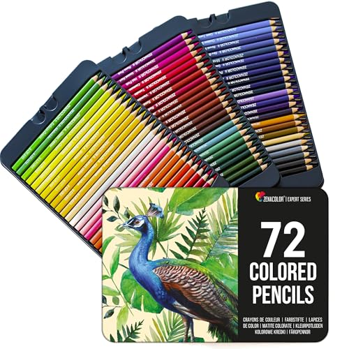 72 färgpennor (numrerade) med metallask från Zenacolor - 72 unika färgpennor och färdigvässade kritor för målarbok - lättåtkomliga med 3 fack - perfekt julklappsset för konstnärer, vuxna och barn