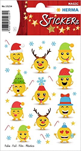 HERMA 15234 julklistermärken, julsemojis (11 klistermärken, folie, matt) självhäftande juldekoration, permanenta självhäftande etiketter för jul, presenter, hantverk, adventskalender, färgglada