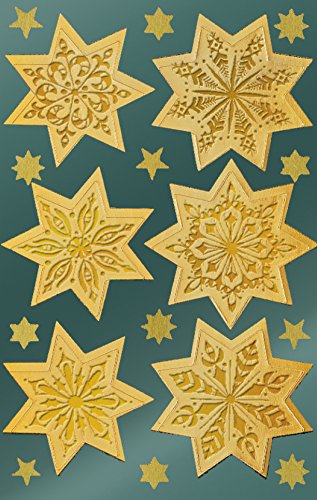 AVERY Zweckform 36 klistermärken, julstjärnor, guld (tillverkade i Tyskland, julklistermärken, glansigt papper, självhäftande juldekoration för kort, gåvor, påsar), 2 ark/18 stjärnklistermärken, vardera 52808
