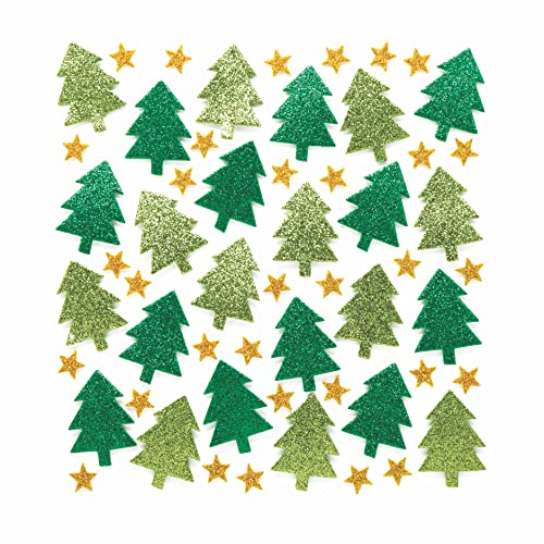 Baker Ross AR713 glitterträd, julklistermärken för konst och hantverk (paket med 100), blandade